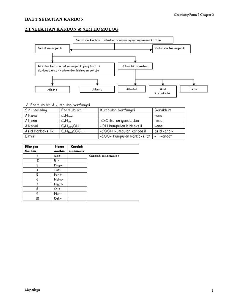 Nota Kimia Spm Tingkatan 5 Bab 2 Sebatian Karbon Youtube