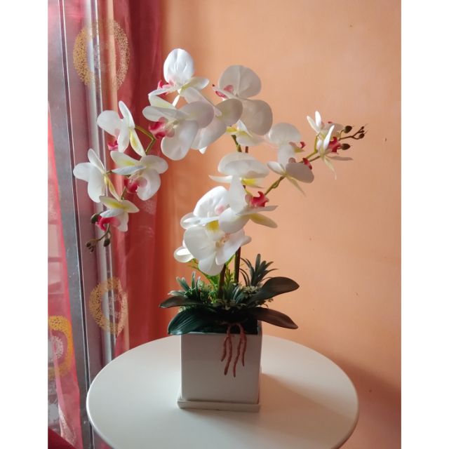 Orkid Latex 1 Tangkai Siap Gubah Bersama Pasu Seramik Bunga Besar Shopee Malaysia