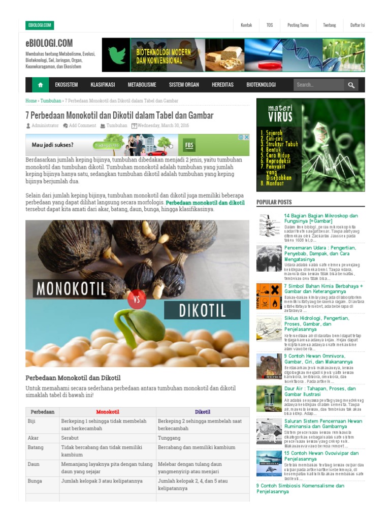 Ilmu Pengetahuan Perbedaan Tumbuhan Monokotil Dan Dikotil