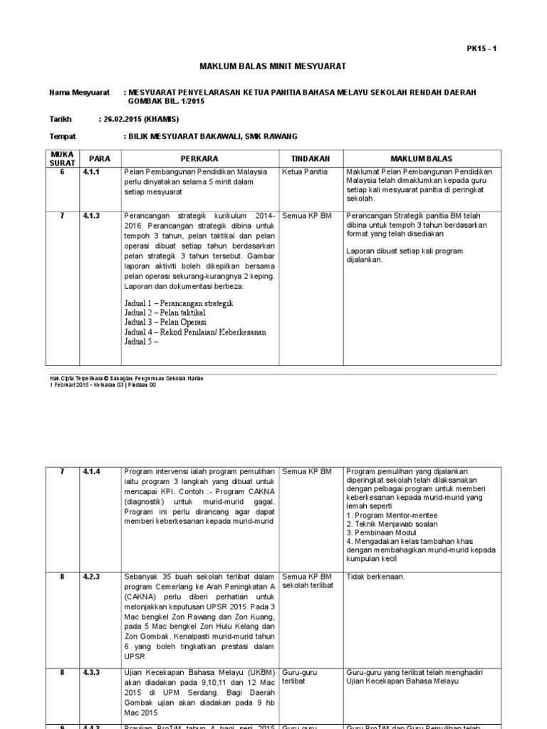 Doc Contoh Pelan Strategik Dan Pelan Taktikal Panitia Bahasa Melayu Hadi Pro Academia Edu