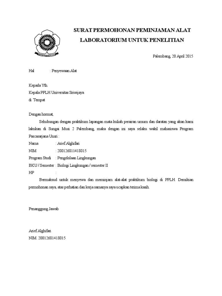 Contoh Surat Permohonan Peminjaman Dan Pemakaian Laboratorium