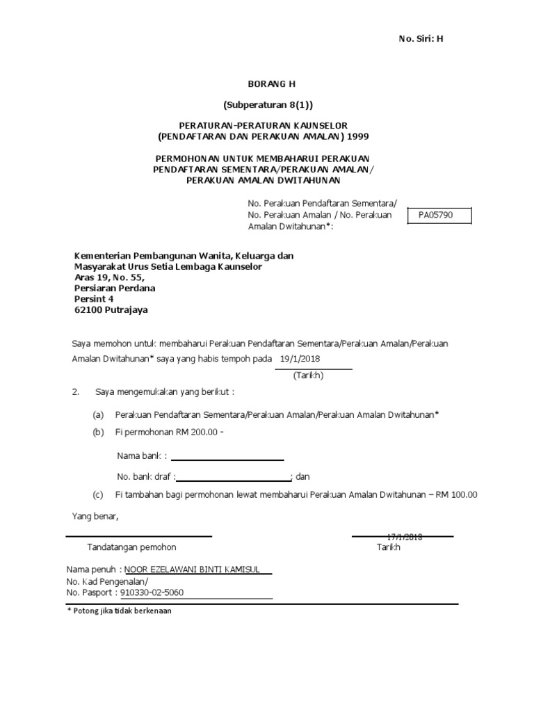 Borang H Pembaharuan Perakuan Amalan