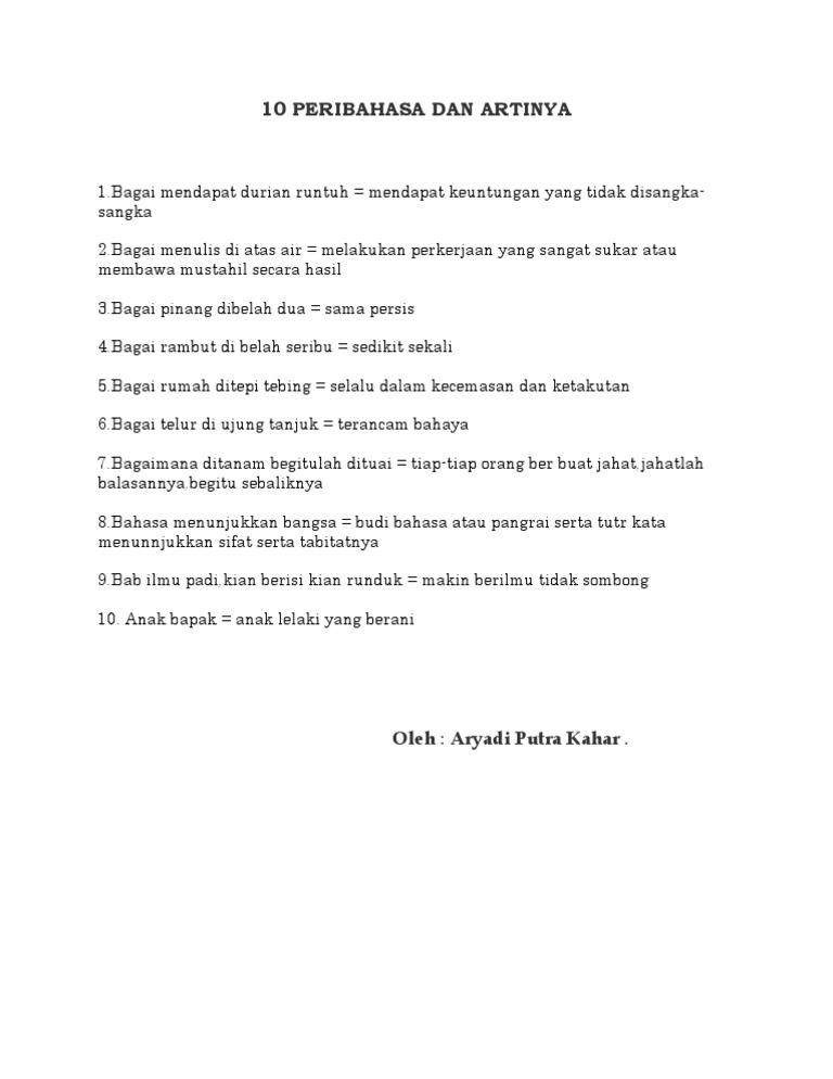 10 Peribahasa Dan Artinya Pdf Document