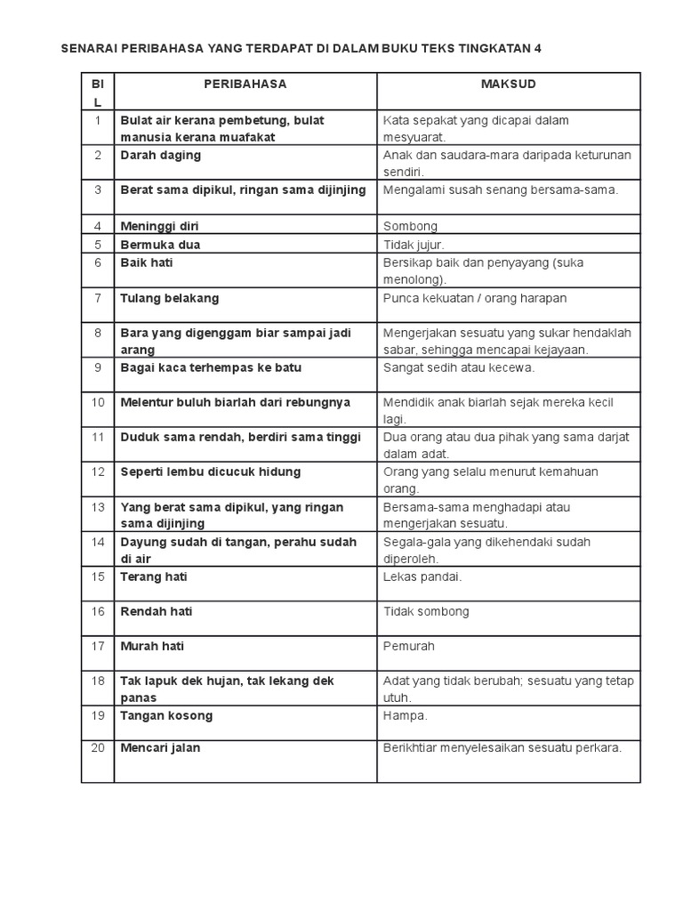 Senarai Peribahasa Dalam Buku Teks Tingkatan 4 Dan 5