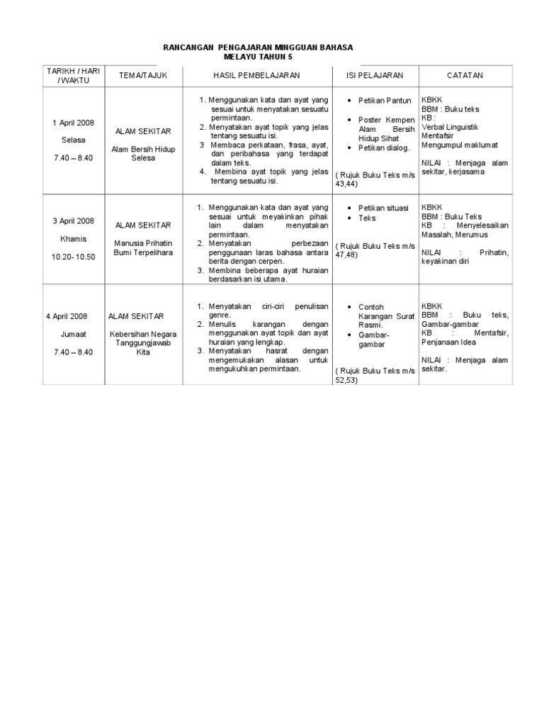 Rancangan Pengajaran Mingguan Rpm Zahid