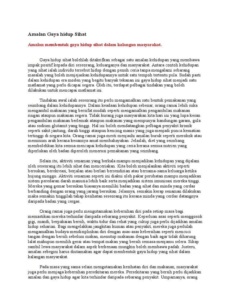 Koleksi Karangan Amalan Gaya Hidup Sihat Dan Pencemaran Alam Project