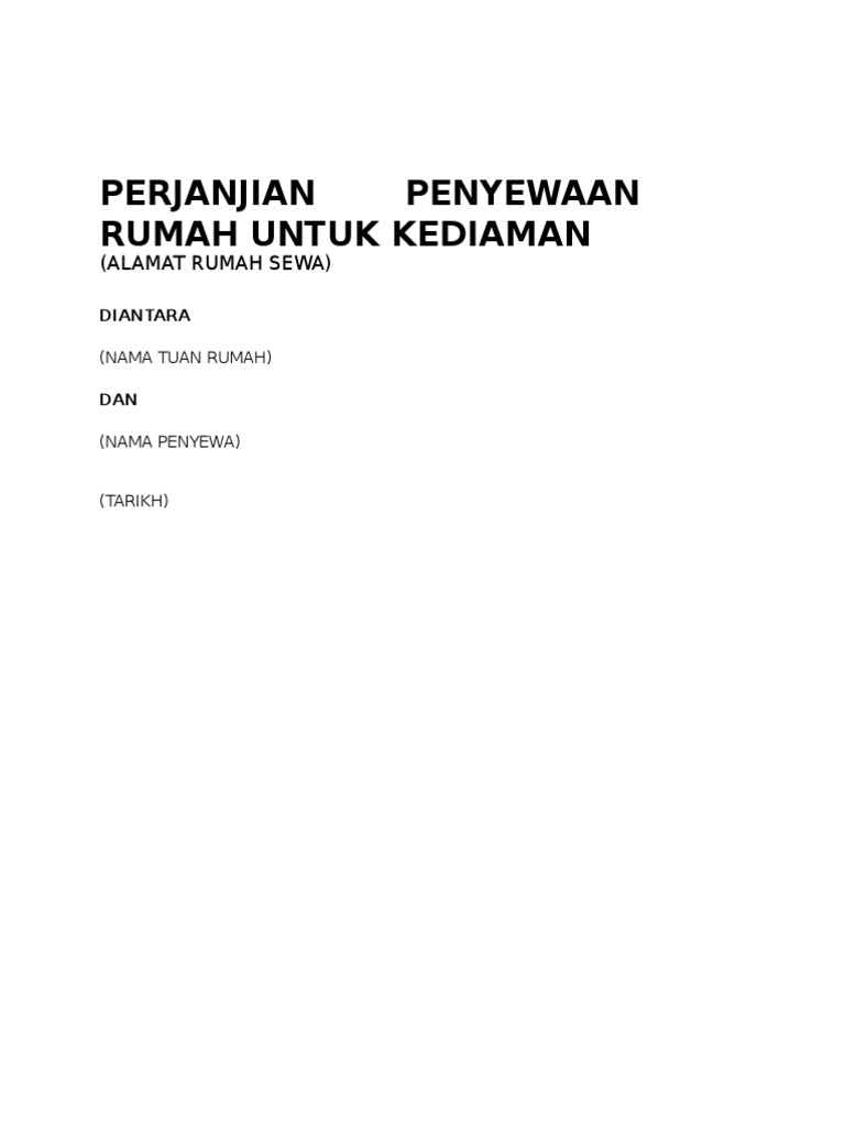 Perjanjian Penyewaan Rumah Untuk Kediaman Doc