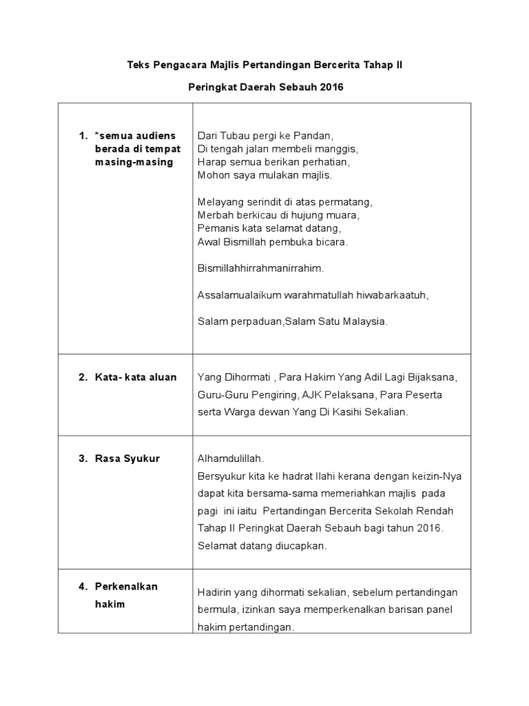 Teks Pengacara Majlis Pertandingan Bercerita Tahap 1 Dan 2