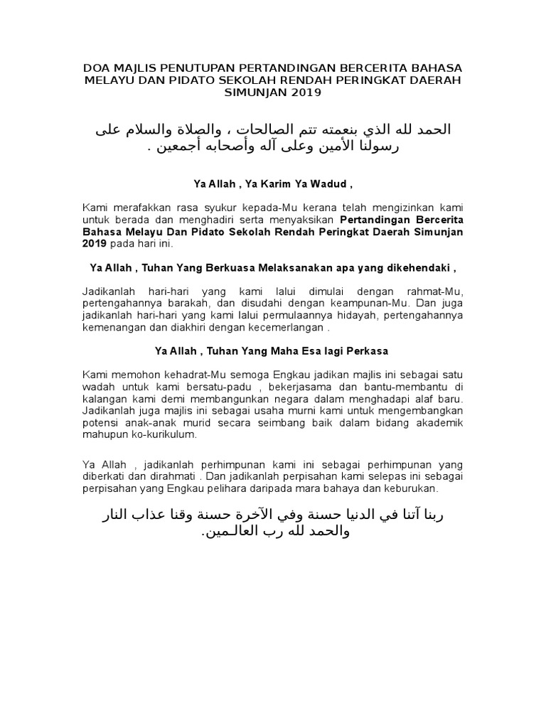 Doa Penutupan Pertandingan Bercerita Bm Dan Pidato Daerah Simunjan 2019
