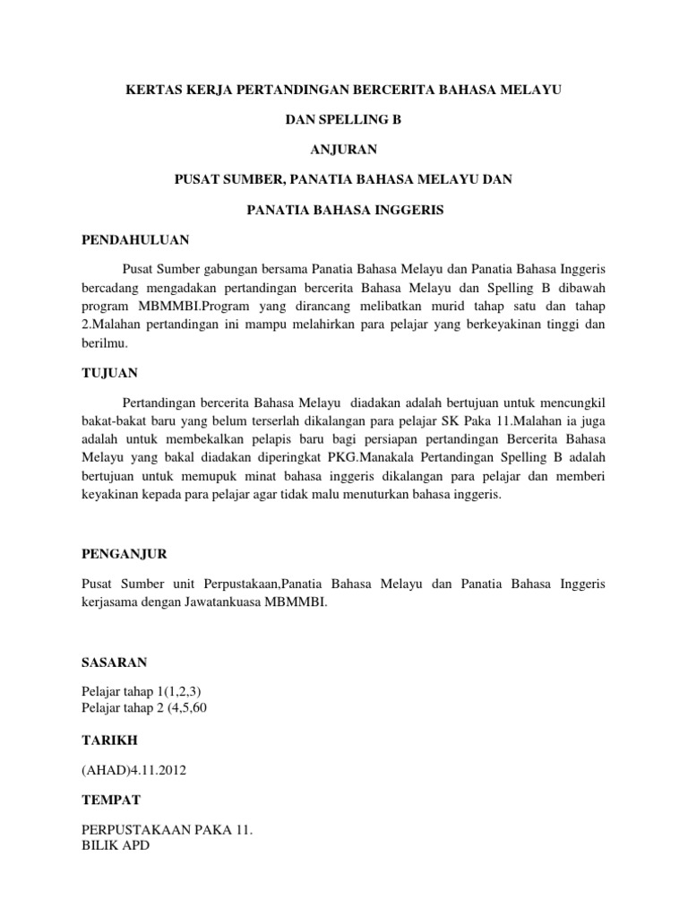 Kertas Kerja Pertandingan Bercerita Bahasa Melayu Docx