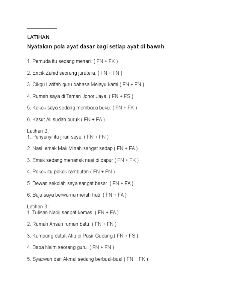 Latihan Pola Ayat Dasar Bahasa Melayu