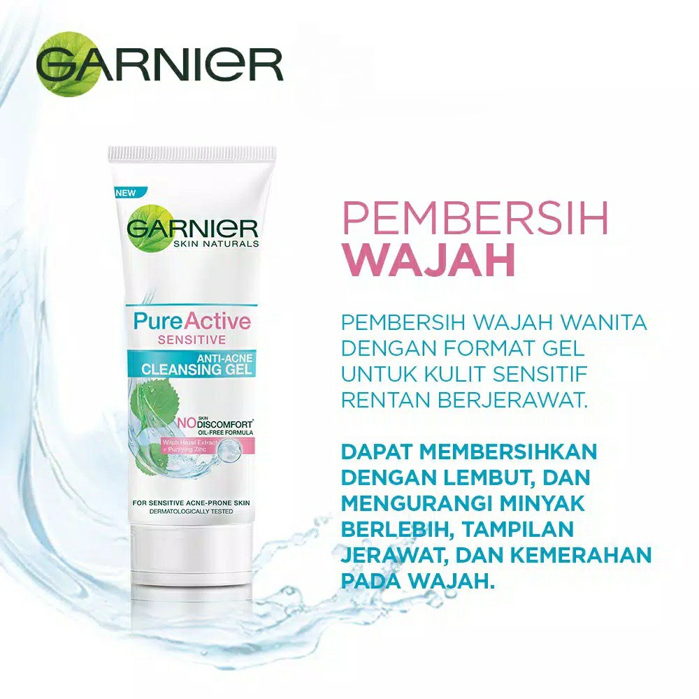 Garnier Pure Active Sensitive Cleansing Gel 100ml Sensitif Jerawat Witch Hazel Facial Foam Cleanser Shopee Indonesia