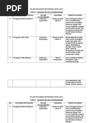 Pelan Program Intervensi Upsr 20142015 Bm1