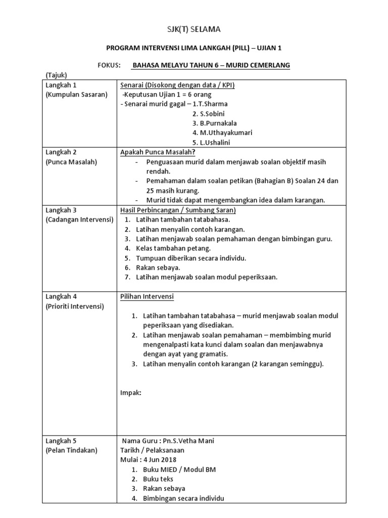 Contoh Pelan Intervensi Bahasa Inggeris Tahun 6 Raihan Jalaludin S Blog