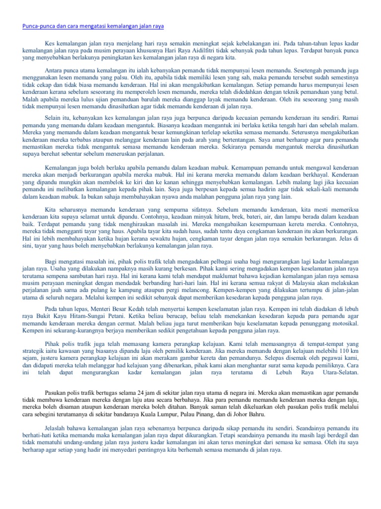 Karangan Ppsr Punca Punca Kemalangan Di Jalan Raya Duniaku Nasa2k