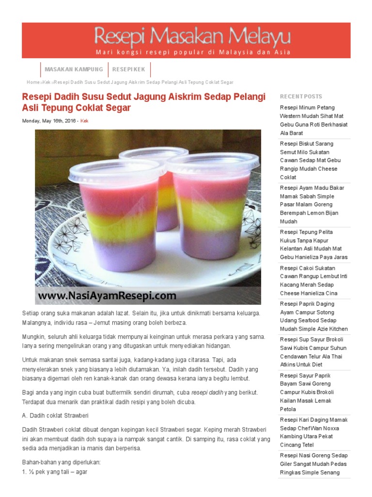 Resepi Dadih Susu Sedut Jagung Aiskrim Sedap Pelangi Asli Tepung Coklat Segar Nasiayamresepi